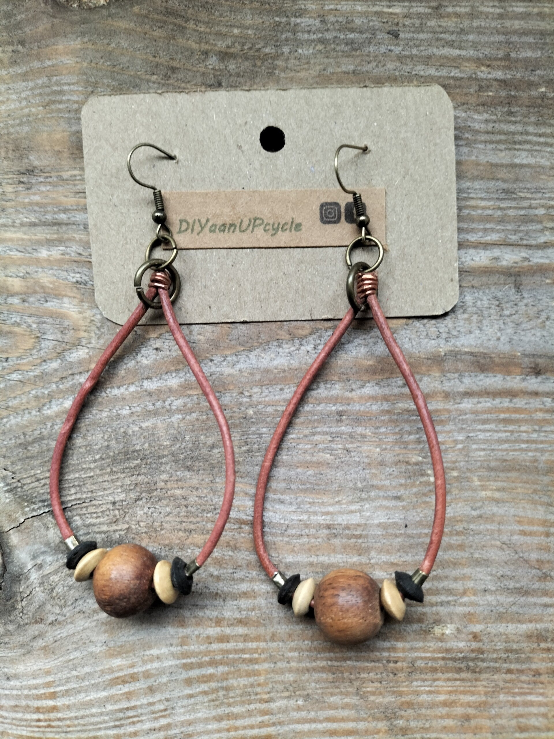 Unieke leren oorbellen met kralen met nikkelvrije oorstekers.