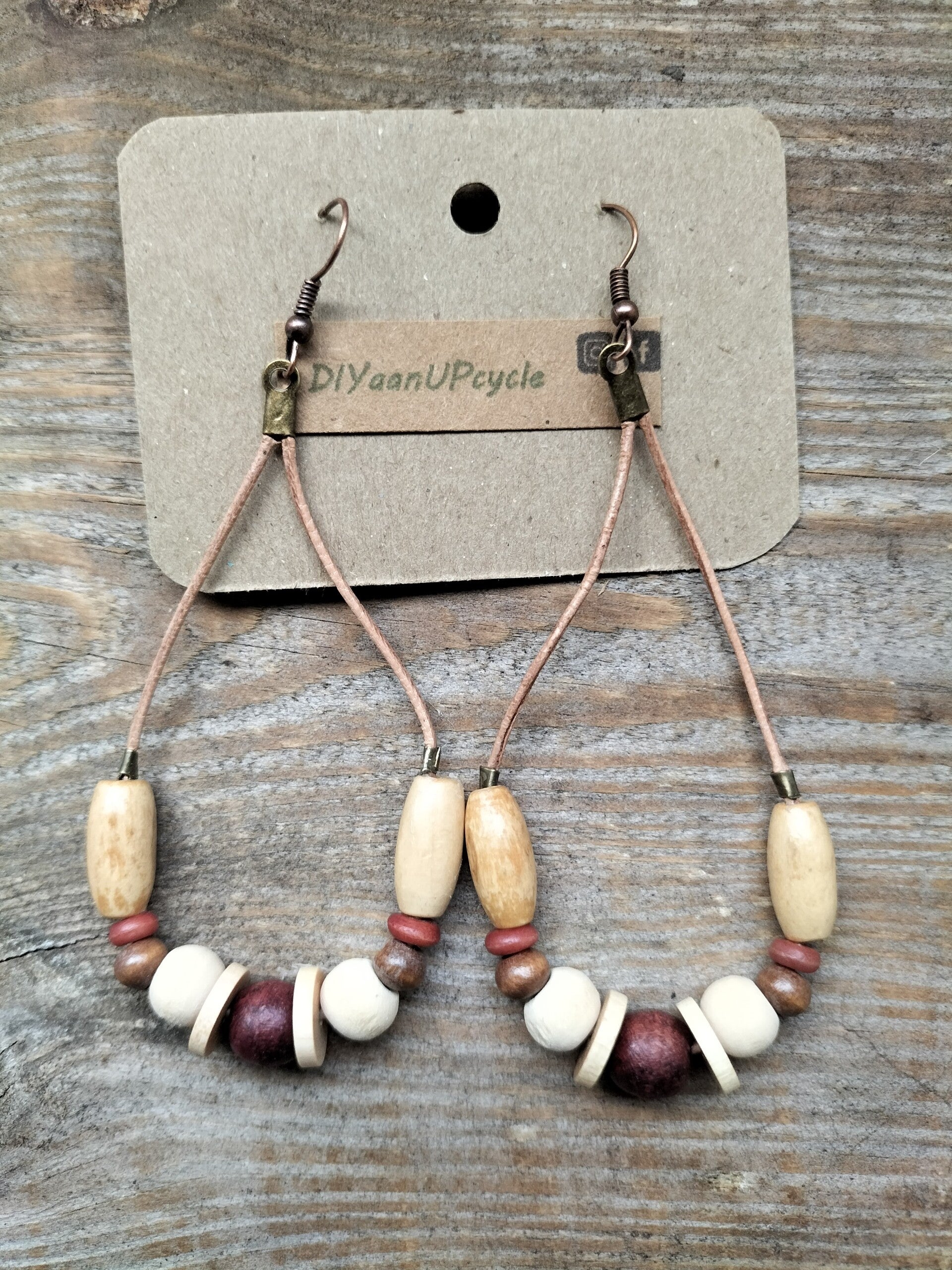Leren oorbellen met kralen en nikkelvrije oorstekers.