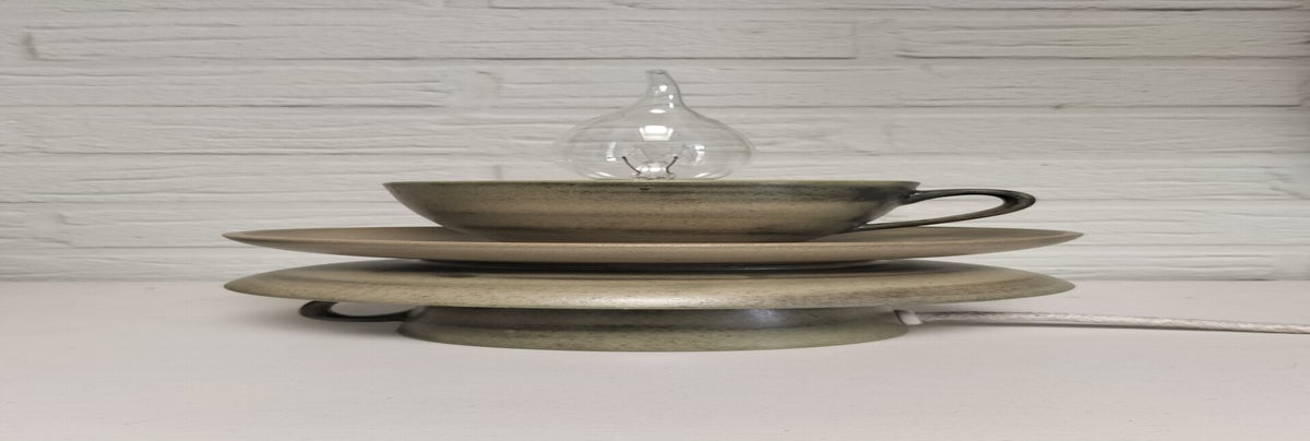 Upcycle tafellampje van een porseleinen kop en schotel,